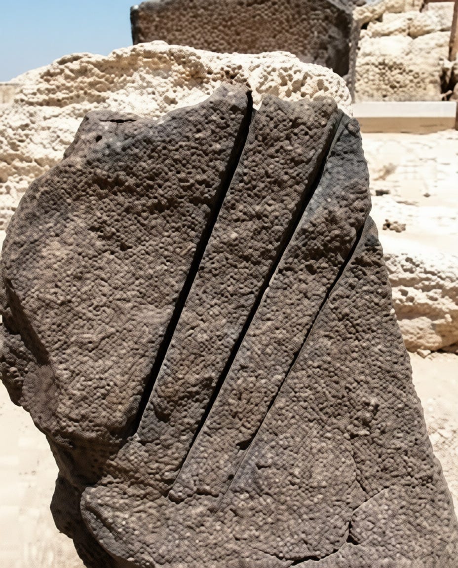 Walking through the Giza plateau, the “Basalt Floor” offers irrefutable proof of lost advanced technology. We find precision cuts of millimetric accuracy, sharp and perfectly parallel edges on stone blocks, which can only be achieved with stable and highly rigid cutting machines—technology that did not exist according to official history. The edges show striations that could only have been left by a high-speed cutting machine that remained completely stable during the process.